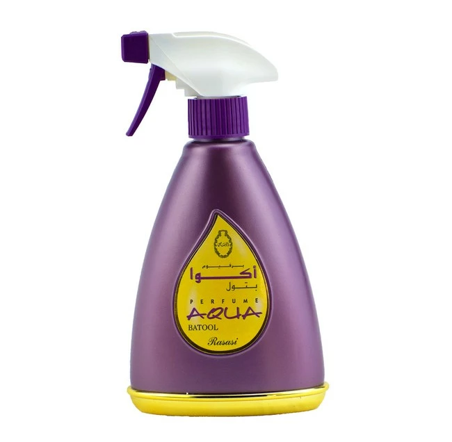 - ABOUT BATOOL: Perfume Batool is a premium water-based fragrance formulated with a secret blend of essential oils. Developed to effectively overcome unpleasant odors and add a fragrant touch to your ambience. Perfume Aqua can be used on curtains, carpets, bed linen, clothes while ironing, and on your hands after meals. All the ingredients used in Perfume Aqua are friendly to human skin, and therefore can be safely used on your body, particularly after you shower.