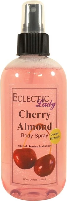 Cherry Almond is a great mix of cherries and almonds. Our body spray adds a little bit of moisture to your skin along with a light fragrance. Our Double Strength formula contains double the fragrance of our original body sprays for people who like a stronger body spray. All of our products are made to order. To avoid leakage in transit, Eclectic Lady tapes all caps on our sprays and places each bottle into it’s very own reclosable bag.