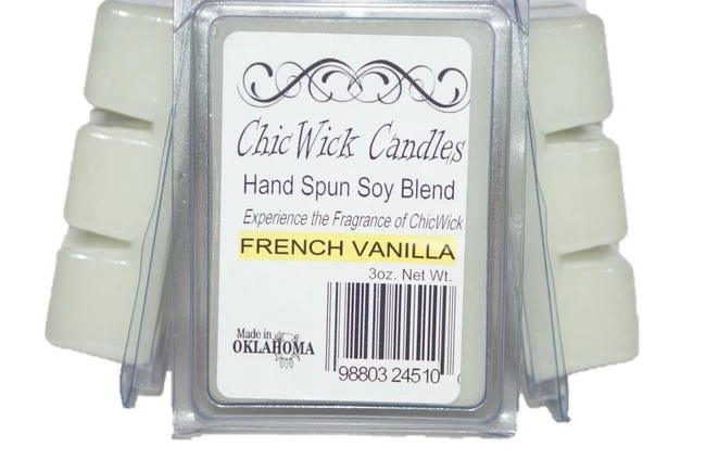 Bring out the famous vanilla. This scent is a classic. Forget the ice cream. Our French vanilla will have you screaming for more. This is one of our signature award winning scents. French Vanilla will be a great addition to your home! All ChicWick products are made in the USA,. Welcome to the fragrance of ChicWick! Our soy blend wax is hand spun at our factory in Yukon Oklahoma. Each melt contains the highest amount of fragrance that will adhere to our very own soy blend. Our soy blend is a slow burning clean burning wax. We pride ourselves on our fragrance. Our Candles Simply Smell Better Color varies by fragrance. Experience the fragrance of ChicWick Candles and add that long lasting aroma to any room. We also pride ourselves on customer service. ChicWick is looking for candle customers and believe in quality at a fair price. Thank you for your interest in our quality products. Item ships out next day in most cases. Free Shipping