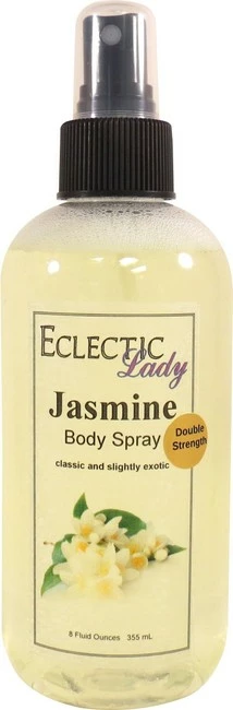 Jasmine is an exotic, classic floral fragrance. This fragrance is phthalate free. Our body spray adds a little bit of moisture to your skin along with a light fragrance. Our Double Strength formula contains double the fragrance of our original body sprays for people who like a stronger body spray. All of our products are made to order. To avoid leakage in transit, Eclectic Lady tapes all caps on our sprays and places each bottle into it’s very own reclosable bag.