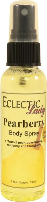 Our Pearberry fragrance is a blend of pear, apple, peach, raspberry and melon with lily of the valley, jasmine, musk, and vanilla. This fragrance is phthalate free. Our body spray adds a little bit of moisture to your skin along with a light fragrance. Our Double Strength formula contains double the fragrance of our original body sprays for people who like a stronger body spray. All of our products are made to order. To avoid leakage in transit, Eclectic Lady tapes all caps on our sprays and places each bottle into it’s very own reclosable bag.
