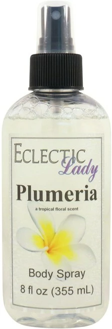 Plumeria is a lovely floral scent – Hawaiian PLUMeria, the flower used for making leis. This fragrance is phthalate free. Our body spray adds a little bit of moisture to your skin along with a light fragrance. Our Double Strength formula contains double the fragrance of our original body sprays for people who like a stronger body spray. All of our products are made to order. To avoid leakage in transit, Eclectic Lady tapes all caps on our sprays and places each bottle into it’s very own reclosable bag.