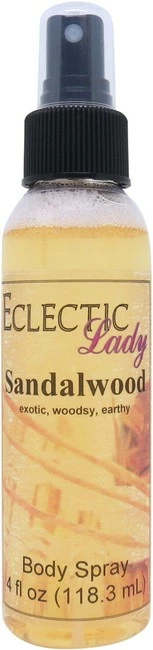 Sandalwood is a slightly exotic, woodsy, earthy fragrance. This fragrance is phthalate free. Our body spray adds a little bit of moisture to your skin along with a light fragrance. Our Double Strength formula contains double the fragrance of our original body sprays for people who like a stronger body spray. All of our products are made to order. To avoid leakage in transit, Eclectic Lady tapes all caps on our sprays and places each bottle into it’s very own reclosable bag.