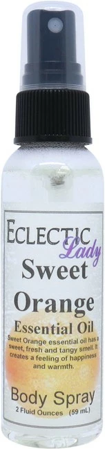 Sweet Orange essential oil has a sweet, fresh and tangy smell. This essential oil is phthalate free. Our body spray adds a little bit of moisture to your skin along with a light fragrance. Our Double Strength formula contains double the fragrance of our original body sprays for people who like a stronger body spray. All of our products are made to order. To avoid leakage in transit, Eclectic Lady tapes all caps on our sprays and places each bottle into it’s very own reclosable bag.
