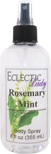 Our Rosemary Mint is a revitalizing blend of rosemary, fresh garden herbs and mint. This fragrance is phthalate free. Our body spray adds a little bit of moisture to your skin along with a light fragrance. Our Double Strength formula contains double the fragrance of our original body sprays for people who like a stronger body spray. All of our products are made to order. To avoid leakage in transit, Eclectic Lady tapes all caps on our sprays and places each bottle into it’s very own reclosable bag.